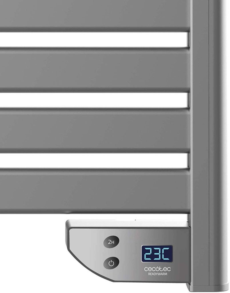 Cecotec Toallero de bajo Consumo Ready Warm 9050 Twin Towel Steel. Bajo Consumo, doble Función Radiador y Seca Toallas, Apto para Baño (IP24), Temporizador, Pantalla, Diseño Moderno, 500 W